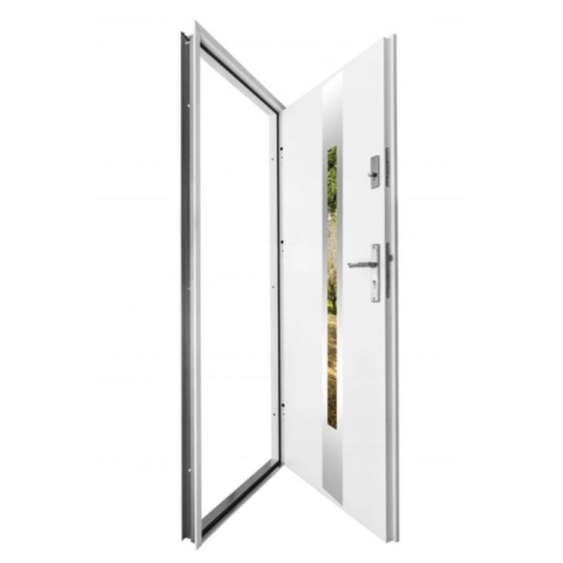 Porte d'entrée 80 cm en acier inoxydable blanc