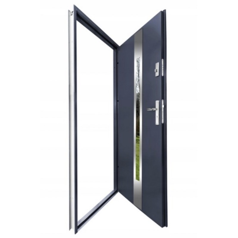 Porte d'entrée 80 cm en acier inoxydable anthracite