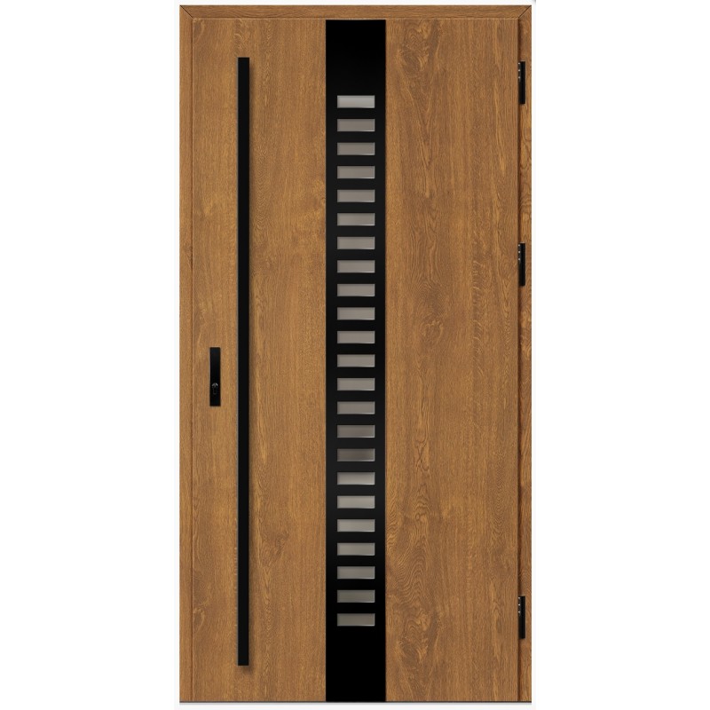 Porte d'entrée en acier avec cadre en aluminium SELTERS 2 chêne doré 90*200 -100*200 cm
