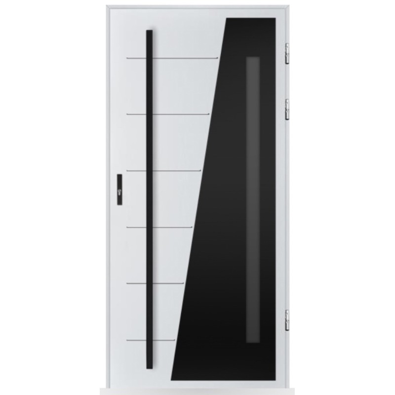 Élégante, performante et sécurisante, la porte d’entrée Manon 80/90 cm conjugue modernité architecturale et haut niveau d’isolation. Son design unique, marqué par une barre de tirage verticale de 180 cm et un insert vitré en biais, donne à votre façade une identité forte et contemporaine.