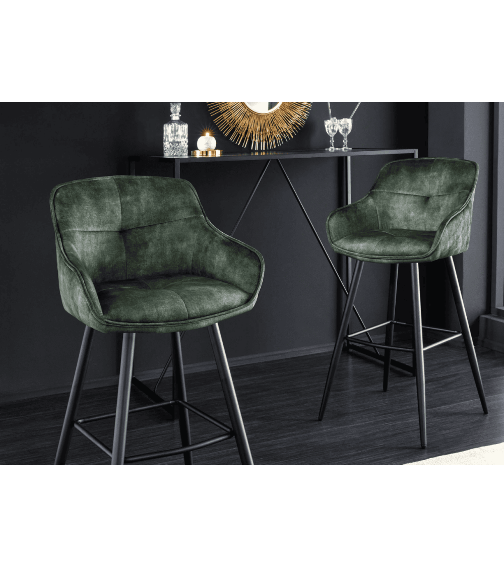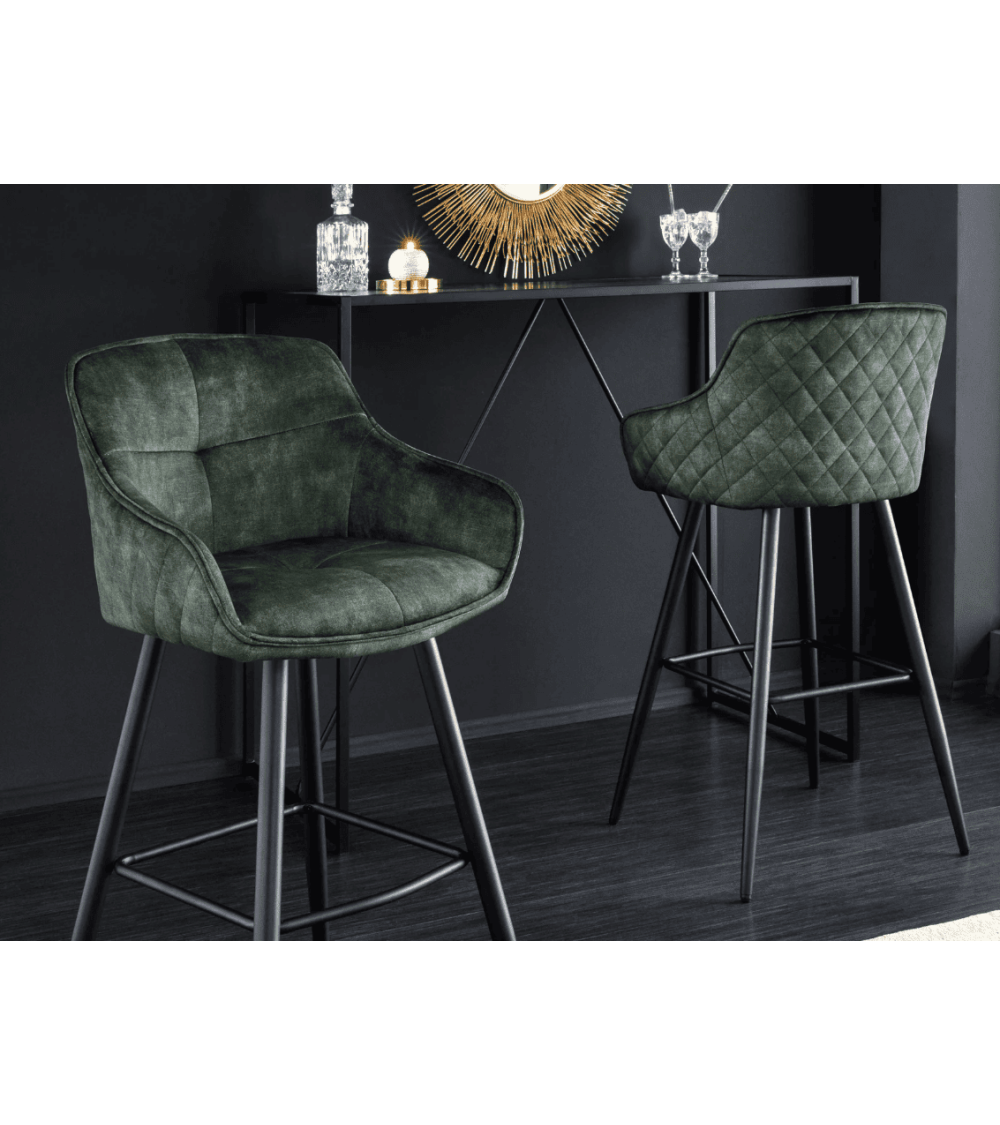 La chaise de bar EUPHORIA 74 cm en velours vert est bien plus qu’un simple siège : c’est une déclaration de style pour tout intérieur. Son tissu en velours doux apporte une sensation de luxe, tandis que ses pieds en métal noir thermolaqué garantissent durabilité et robustesse.