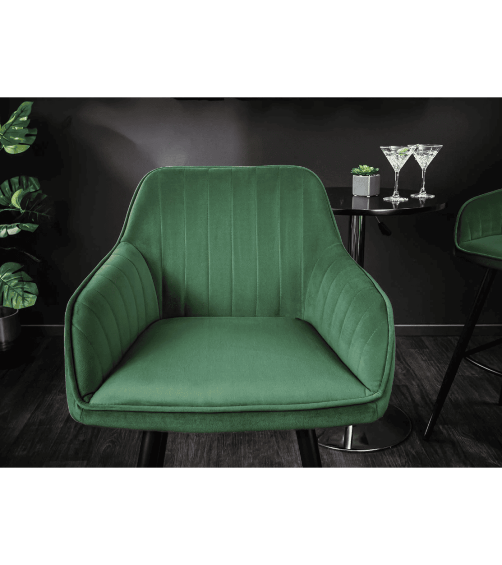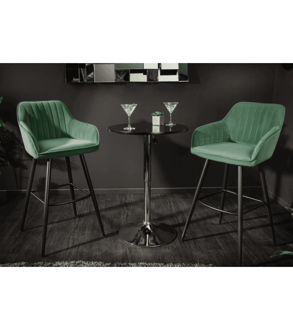 La Chaise haute TURIN en velours vert émeraude est bien plus qu’un simple meuble. Elle transforme votre coin repas ou votre bar en un espace à la fois chic et convivial. Grâce à son revêtement en velours doux et ses surpiqûres élégantes, cette chaise incarne le raffinement tout en offrant un confort exceptionnel.
