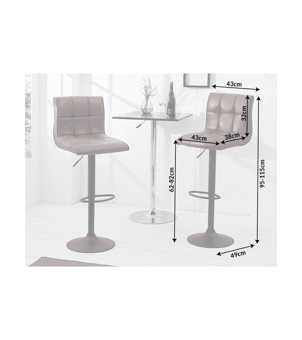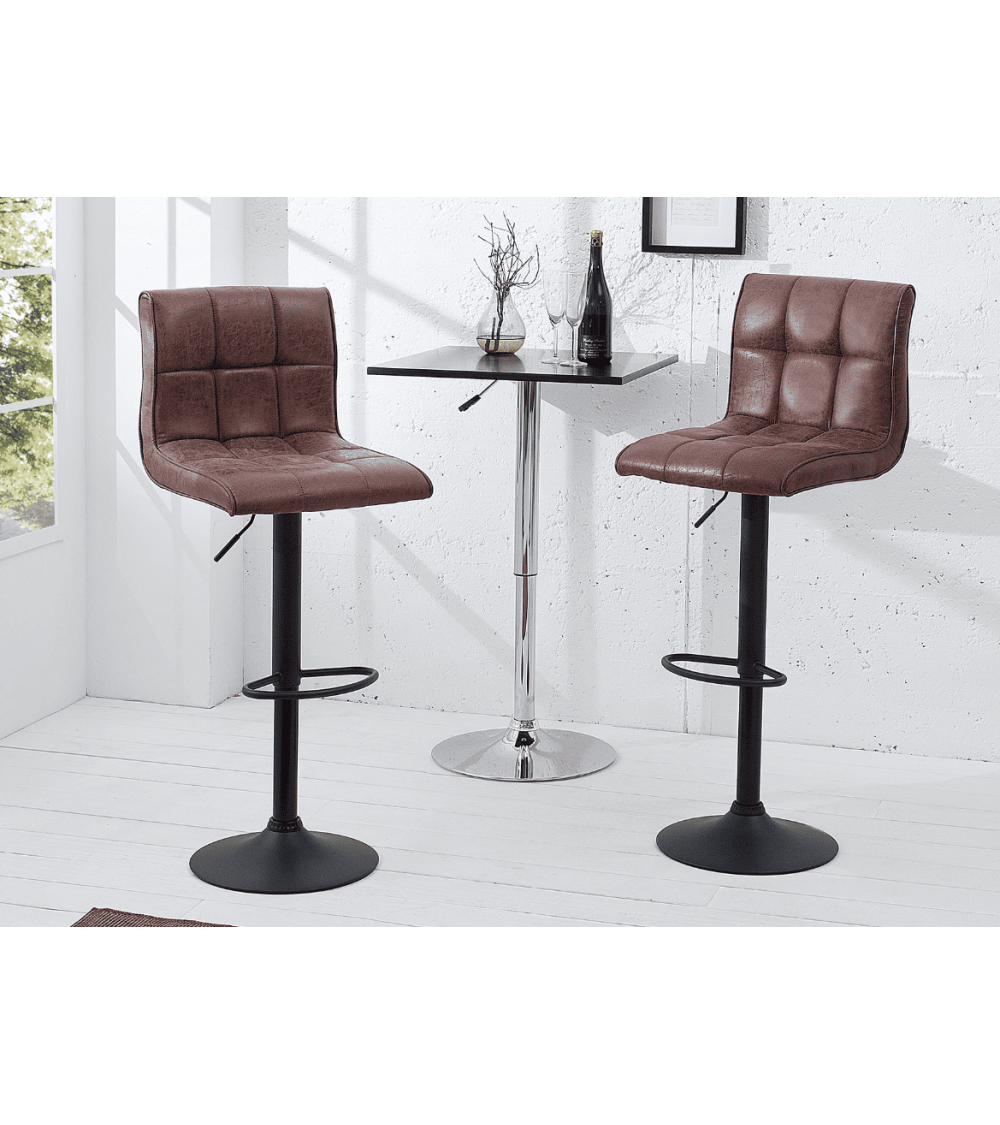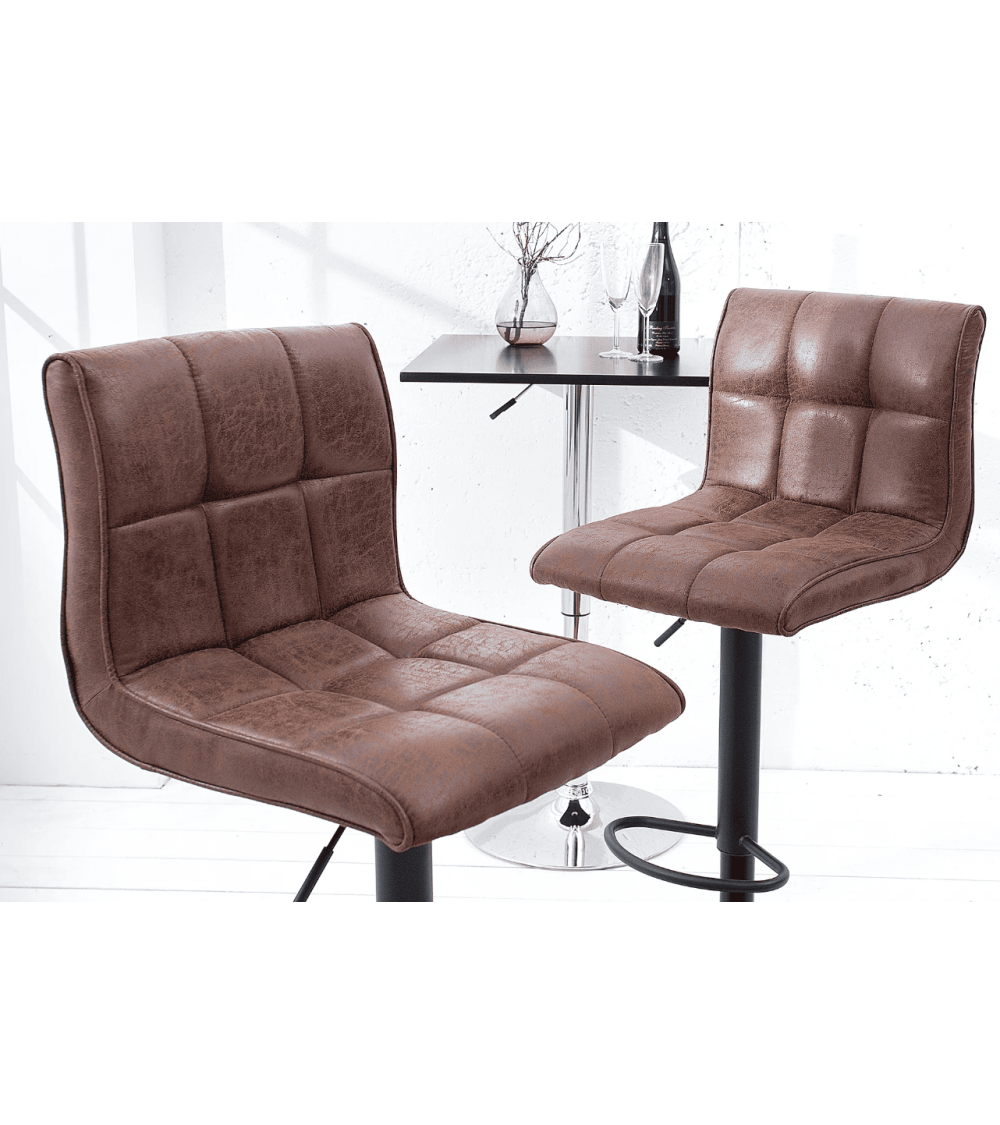 Le Tabouret de bar MODENA est conçu pour offrir un mélange parfait de confort et d'esthétique. Son revêtement en microfibre marron vintage apporte une touche de caractère, tandis que sa hauteur réglable (95-115 cm) le rend polyvalent pour différents types d'espaces.