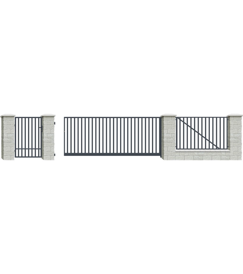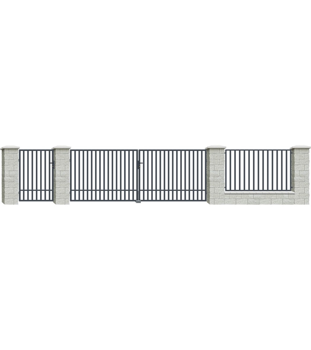 SALVADOR est un portail modern avec une structure simple. La clôture a été peinte en anthracite, en plus décorée d'une structure délicate, créant un ensemble extrêmement élégant. Le produit est protégé contre la corrosion par galvanisation et a une haute résistance aux intempéries et à la décoloration.