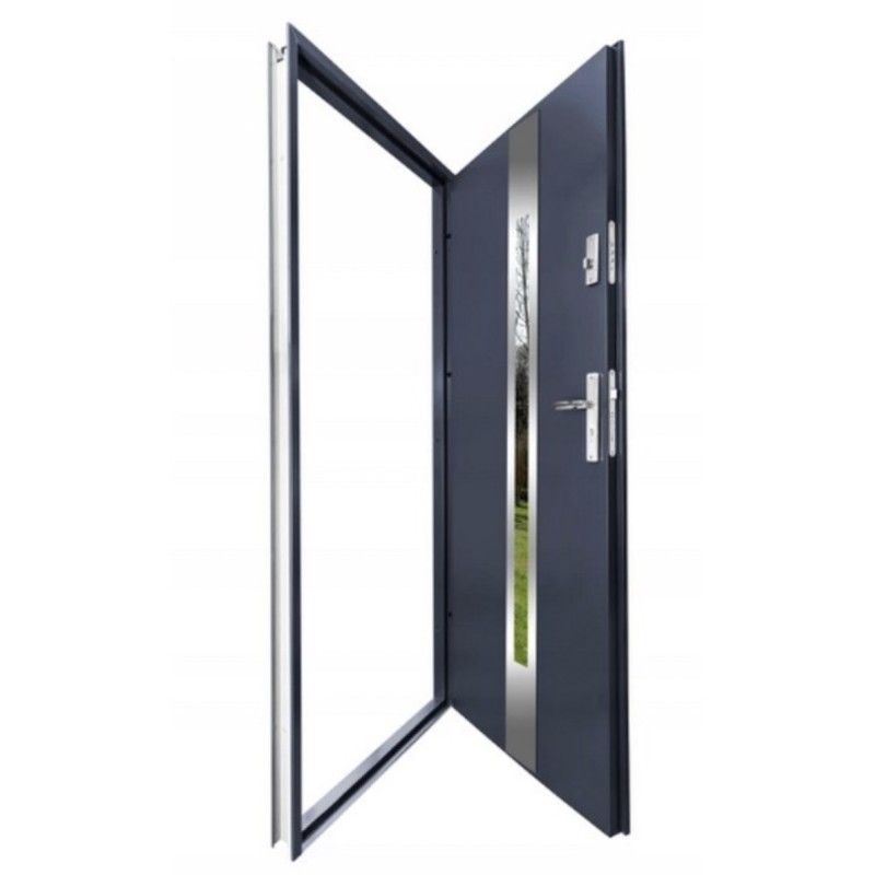 Porte d'entrée 80 cm en acier inoxydable anthracite