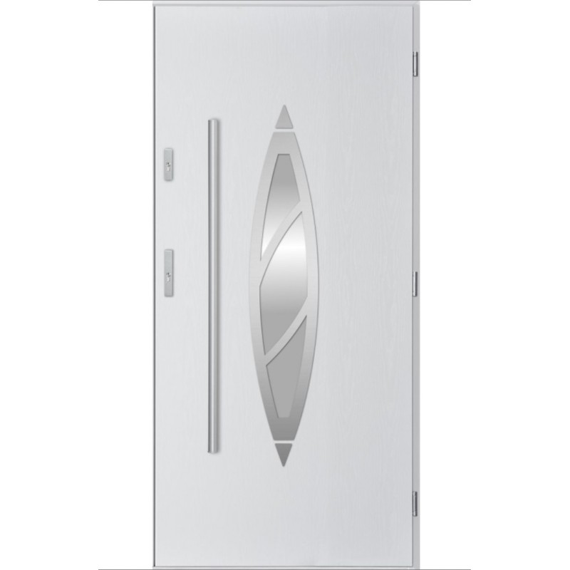 Porte extérieure de 55 mm d'épaisseur composée d’acier inoxydable. La structure est remplie d'une plaque de mousse polyuréthane et de bois possédant de très bonnes propriétés isolantes et acoustiques.