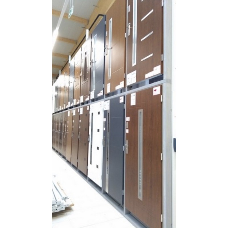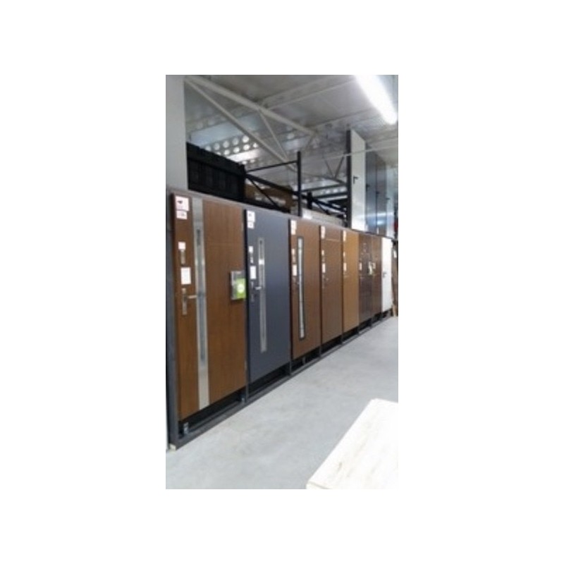 L'ouvrant est équipée de 3 goupilles anti-levier. Le cadre de la porte est constitué de profilés en acier galvanisé recouverts d'un stratifié ressemblant au bois.