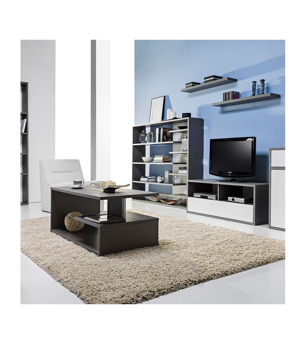 Composé d'une table basse, d'un meuble TV et de 2 étagères, vous pouvez y ajouter la bibliothèque en option pour plus de rangements et pour un effet design assuré.